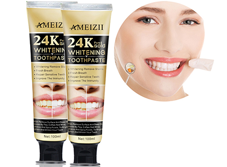 "Gold toothpaste" oqartirish omilini o'z ichiga oladi, samarali singdiradi, og'izdan yomon hidni keltirib chiqaradigan bakteriyalarni yo'q qiladi, uzoq davom etadigan yangi nafas oladi va periodontit va gingivitning oldini olish ustida ishlaydi. Blyashka va tish toshlarini olib tashlaydigan tarkibiy qismlar mavjud. Shuningdek, u tabiiy tuzilishni tiklaydi va tish va choy ichishdan kelib chiqadigan rangsizlanishni ketkazadi, bu ajoyib og'iz sog'lig'iga va oqartirilgan tishlarga olib keladi.